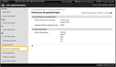 Connectez-vous à l'interface utilisateur distante (Démarrage de l'interface utilisateur distante [Suivi statut/Annulation]  [Fonctions du périphérique]