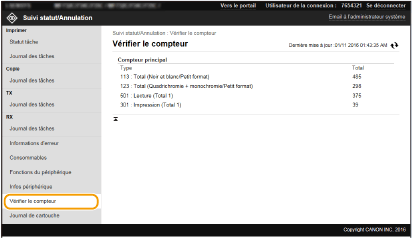 Connectez-vous à l'interface utilisateur distante (Démarrage de l'interface utilisateur distante [Suivi statut/Annulation]  [Vérifier le compteur]