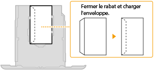 Chargez les enveloppes de manière à ce que le rabat soit vers la gauche de l'appareil comme illustré.