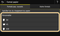 ![]() ![]() Si vous enregistrez les formats papier que vous utilisez fréquemment sur les boutons <S1> à <S3>, vous pouvez les appeler d'une seule touche. Enregistrement d'un format de papier personnalisé