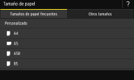 ![]() ![]() Si registra el tamaño de papel que utiliza con más frecuencia en los botones <S1> a <S3>, puede recuperarlo con una tecla abreviada. Registro de tamaños de papel personalizados