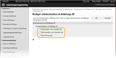 Marker afkrydsningsfeltet [Administration af Afdelings-ID].