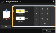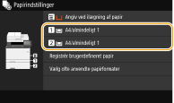 ![]() ![]() Hvis du registrerer de ofte anvendte papirformater på knapperne <S1> til <S3>, kan du aktivere dem med ét enkelt tryk. Registrering af brugerdefineret papirformat