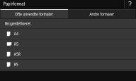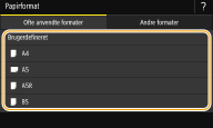 ![]() ![]() Hvis du registrerer de ofte anvendte papirformater på knapperne <S1> til <S3>, kan du aktivere dem med ét enkelt tryk. Registrering af brugerdefineret papirformat