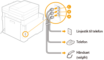 Sæt det medfølgende telefonkabel i linjestikket til telefon på maskinen (