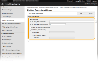 Merk av for [Bruk Proxy], og angi de nødvendige innstillingene.