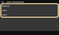 Hvis et dokument skrives ut skjevt eller utenfor det skrivbare området, må du justere utskriftsposisjonen. Du kan justere utskriftsposisjonen for hver papirkilde. Du kan justere utskriftsposisjonen i området -5,0 til +5,0 mm i trinn på 0,1 mm.