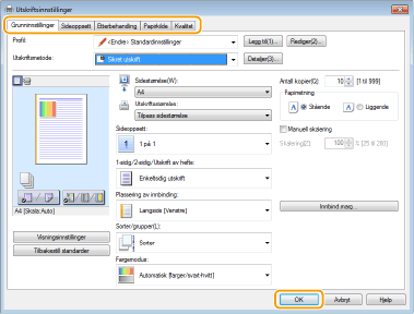 Angi utskriftsinnstillingene etter behov, og klikk på [OK].