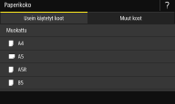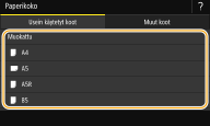 ![]() ![]() Jos usein käytettävä paperikoko tallennettiin painikkeisiin <S1>–<S3>, ne voidaan palauttaa yhdellä kosketuksella. Mukautetun paperikoon tallentaminen