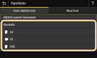![]() ![]() Jos usein käytettävä paperikoko tallennettiin painikkeisiin <S1>–<S3>, ne voidaan palauttaa yhdellä kosketuksella. Mukautetun paperikoon tallentaminen