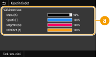Väriainekasetissa jäljellä oleva väriaineen määrä