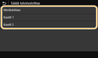 Jos asiakirja tulostetaan sivuun tai tulostettavan alueen ulkopuolelle, säädä tulostuskohtaa. Jokaisen paperilähteen tulostuskohtaa voidaan säätää. Tulostuskohtaa voidaan säätää alueella -5,0 – +5,0 mm 0,1 mm:n portain.