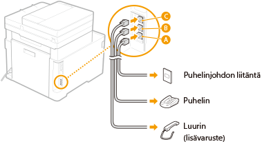 Kytke mukana tuleva puhelinjohto laitteen puhelinlinjaliitäntään (