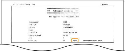 Ett fax kunde inte skickas eftersom mottagarens enhet inte svarade på grund av att linjen var upptagen eller av andra orsaker.