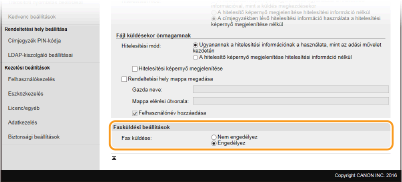 Ha az [Csak önmagának vagy megadott mappába küldést enged] lehetőség van megadva a [Fájl küldése] beállításnál