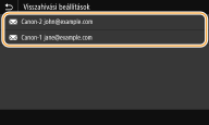 Választhat a legutóbb használt rendeltetési helyek közül is. Ha korábban használt rendeltetési helyet ad meg, akkor a készülék automatikusan beállítja az adott rendeltetési hely előző használata során megadott beolvasási beállításokat, például a fedettséget.