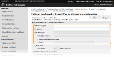 [Hálózati beállítások - E-mail/I-Fax beállításai] lehetőséget.