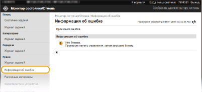 При появлении ошибки щелкните сообщение, показанное в [Информация об ошибке] на странице портала (главная страница), — отобразится эта страница.