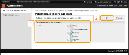 Можно также задать значения [Передача в режиме ECM] и [Скорость] из меню <Настройки факса> ( <Отправка>) на панели управления. Однако настройки, сделанные из меню <Адресная книга>, активируются для детальных настроек мест назначения, зарегистрированных в адресной книге.