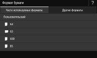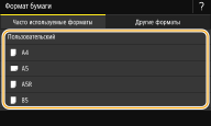 Если приведенный выше экран не отображается при загрузке бумагиЕсли вы всегда загружаете в универсальный лоток бумагу одинакового размера, можно пропустить операции по определению бумаги, выполнив регистрацию размера и типа бумаги в качестве параметра по умолчанию. Однако если зарегистрирован параметр по умолчанию, приведенный выше экран не отображается. Чтобы отобразить этот экран, выберите <Указать при загрузке бумаги> (Регистрация параметров бумаги по умолчанию для универсального лотка).