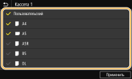 Снимите флажки напротив форматов бумаги, которые не должны отображаться.