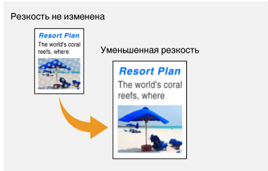 Можно настроить резкость скопированного изображения. Можно увеличить резкость расплывчатого текста и строк или снизить ее для улучшения качества для фотографий, напечатанных в журнале.