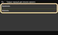 Даже если выбрано значение <Включить>, данные печатаются с использованием только тонера K (черный) в зависимости от настройки параметра <Профиль вывода> или <Чисто черный текст>.