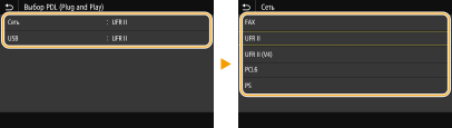 Выберите язык описания страниц, чтобы при подключении к компьютеру с помощью функции Plug and Play аппарат определялся как принтер, поддерживающий эти языковые настройки.