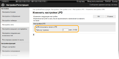Установите флажок, чтобы разрешить печать по протоколу RAW. Если печать по протоколу RAW не используется, снимите флажок. [Тайм-аут приема]