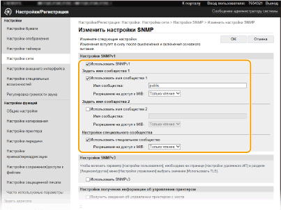 Если SNMPv1 отключен, некоторые функции аппарата будут недоступны (например, получение сведений об аппарате посредством драйвера принтера).
