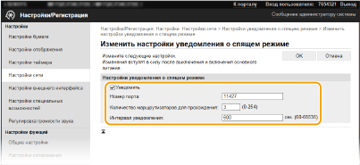Установите этот флажок, чтобы уведомлять программное обеспечение управления о статусе питания аппарата. Если выбран параметр [Уведомить], аппарат блокирует нежелательный обмен данными в спящем режиме, что позволяет снизить общий уровень энергопотребления. [Номер порта]