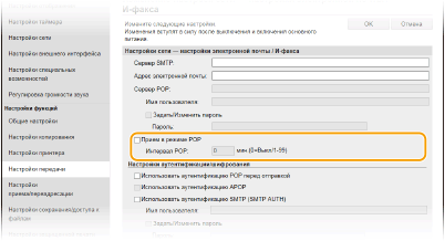 Данный параметр определяет интервал (в минутах) автоматического подключения к серверу POP3. Если на сервере имеются интернет-факсы, они будут автоматически приняты и напечатаны.