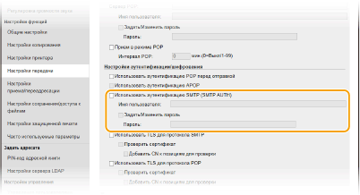 Если настроена аутентификация SMTP (SMTP AUTH), при отправке электронной почты или интернет-факса производится идентификация по имени пользователя и паролю.