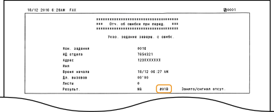 Если произошла ошибка (например, не удалось выполнить печать или невозможно отправить/получить факс или отсканированный оригинал), соответствующий код ошибки отображается в отчете или в сообщении на экране журнала задания в виде трехзначного номера. Чтобы найти причины и решения, связанные с каждым кодом ошибки, ознакомьтесь со следующими разделами. Сведения о печати отчета об ошибке, а также об информации, содержащейся в этом отчете, см. в разделе