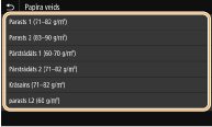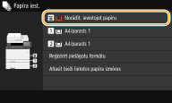 Kad ir reģistrēts noklusējuma papīra iestatījums, ievietojot papīru, netiek rādīts papīra iestatījumu ekrāns un vienmēr tiek lietots viens un tas pats iestatījums. Ja ievietosit cita formāta vai veida papīru, bet nemainīsit papīra iestatījumus, iekārta, iespējams, nedrukās pareizi. Lai novērstu šo problēmu, 3. darbībā izvēlieties <Norādīt, ievietojot papīru> un pēc tam ievietojiet papīru.