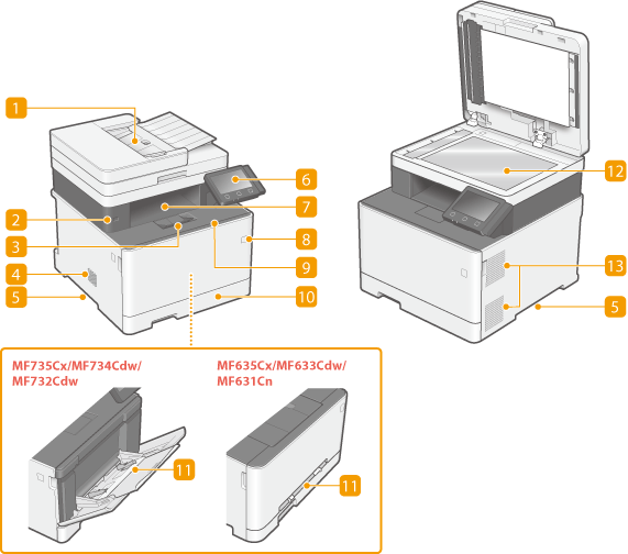 Tiektuvas automatiškai tiekia originalus į aparatą nuskaityti. Įdėjus į tiektuvą du ir daugiau lapų, originalus galima nuskaityti nepertraukiamai. Ekspozicinio stiklo dangtelis prispaudžia ant ekspozicinio stiklo padėtus originalus.