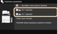 ![]() ![]() Jeigu užregistruojate dažnai naudojamo popieriaus formatą naudodami mygtukus <S1>–<S3>, galite iškviesti juos vienu lietimu. Pasirinktinio popieriaus formato registravimas