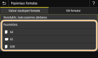 ![]() ![]() Jeigu užregistruojate dažnai naudojamo popieriaus formatą naudodami mygtukus <S1>–<S3>, galite iškviesti juos vienu lietimu. Pasirinktinio popieriaus formato registravimas