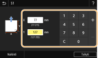 Pasirinkite <X> arba <Y>, tada skaičių mygtukais įveskite kiekvienos kraštinės ilgį.