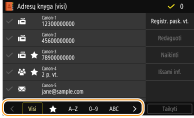 Dažnai naudojamas faksogramų / nuskaitymų vietas galite įregistruoti adresų knygelėje ir prireikus greitai juos pasirinkti (Adresatų registravimas adresų knygelėje). Adresatų galima ieškoti pagal abėcėlę, adresų knygelės sąrašuose arba įvedant trijų skaitmenų skaičius (kodinio rinkimo numerius). Be to, adresatus greičiau galite nurodyti naudodami toliau aprašytas funkcijas.