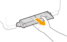 Laikykite rankinio tiekimo dėklo apatinę dalį, tada ištraukite perdavimo kreiptuvą.