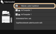 Pärast paberi vaikeseadete salvestamist ei kuvata paberi asetamisel paberi määramise kuva ja alati kasutatakse sama seadet. Kui asetate seadmesse muus formaadis või muud tüüpi paberi paberiseadeid muutmata, ei pruugi seade õigesti printida. Selle probleemi vältimiseks valige 3. juhises <Määram. paberi laadimisel> ja seejärel sisestage paber.