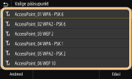 Saate otsida ühenduse loomiseks saadaolevaid traadita side marsruutereid (või pöörduspunkte) ja valida seadme kuvalt ühe. Võrguvõtmena sisestage WEP-võti või PSK. Enne traadita side marsruuteri valimist kontrollige ja kirjutage üles nõutav seadistusinfo, k.a SSID ja võrguvõti (