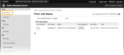 Kliknite [Job Number] na pauziranim i zaštićenim dokumentima radi prikaza detaljnih informacija. Možete provjeriti korisničko ime i broj stranica ispisanog dokumenta.