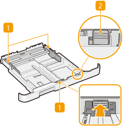 Podesite vodilice papira točno na format umetnutog papira da biste bili sigurni da se papir ravno uvlači u uređaj. Pritisnite ručice za otpuštanje označene strelicama na slici da biste otključali i podesili vodilice za papir.