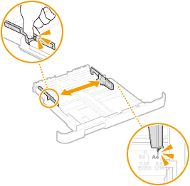 Dok pritišćete ručicu za otpuštanje, pomaknite prednju vodilicu da biste poravnali projekciju s odgovarajućom oznakom veličine papira.