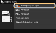 ![]() ![]() Ako registrirate veličine papira koju često koristite na gumbima od <S1> do <S3>, možete ih odabirati dodirom. Registriranje prilagođene veličine papira