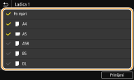 Odaberite željeni izvor papira za koji želite ograničiti prikaz veličina papira.