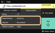 Ako je odredište odabrano iz odjeljka <Adresar> na zaslonu Početni zaslon, moguće je prikazati zaslon s osnovnim značajkama slanja I-faksa, a da odabrano odredište ostane odabrano.