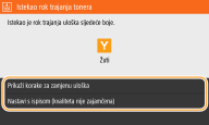 Možete postaviti bilo koju vrijednost kao postotak tonera u spremniku koji aktivira poruku. <Prikaži vrijeme za pr. uloška>